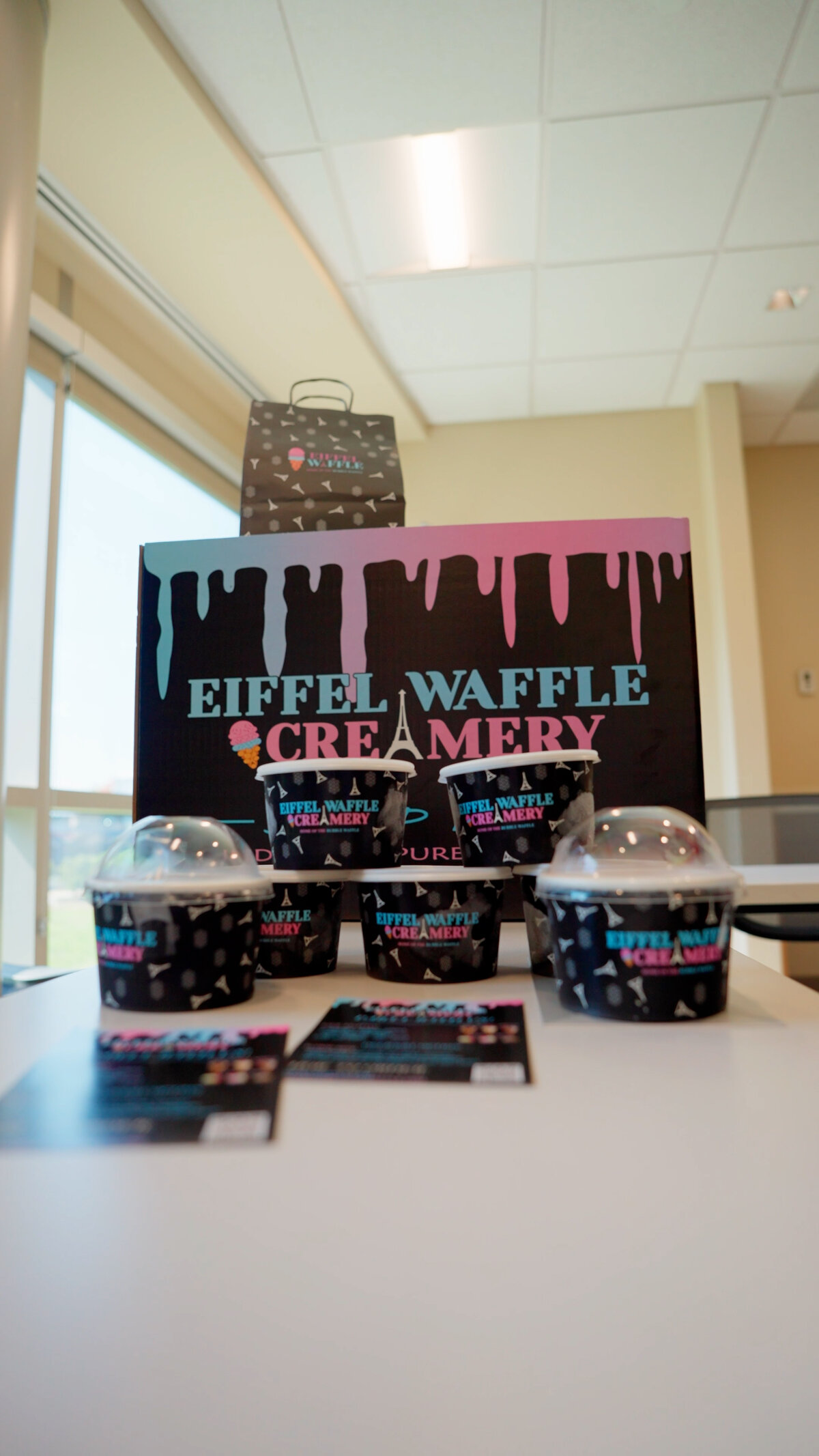 Our bubble waffle sundaes served in our eiffel waffle cup
